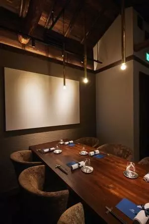 会食や接待、記念日などの食事会にピッタリな、プライベート感のある個室。2階に1部屋だけ、扉付きの落ち着きある設えになっています。大切な人と大切な時間を過ごしながら、特別な料理を味わいたいときに、ぜひ利用したい空間です。