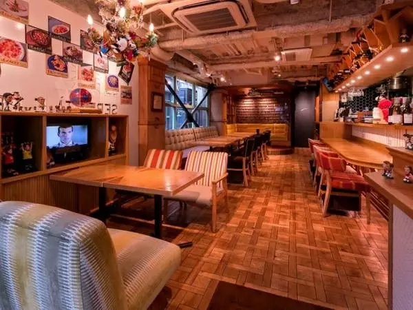 店内は、モニターに映し出されるサッカー映像に壁一面のサッカー雑誌やユニフォーム、フィギュアがあふれ、テーブルはサッカーフィールド模様と、サッカー好きにはたまらない空間。落ち着いた雰囲気のカウンター、テーブル席に広々としたソファ席もあるので、サッカーファンならずとも様々なシーンに利用できるアットホームなお店です。