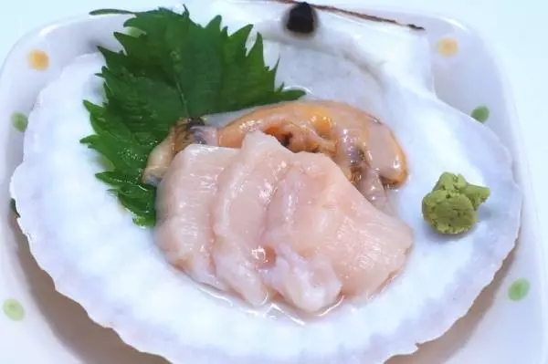 小樽産の活ホタテの刺身(275円)は、赤字覚悟のサービス品。