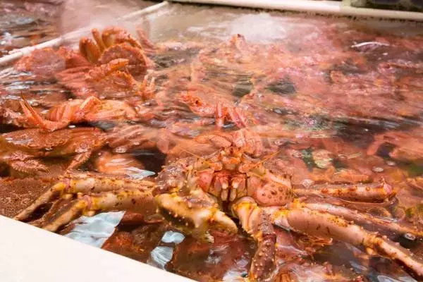 水槽内には日替わりで、「活毛ガニ」や「活花咲ガニ」、「活タラバガニ」などがスタンバイ