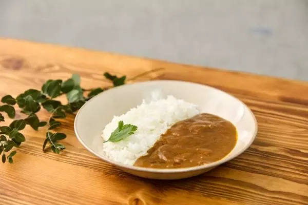 ソテーした玉ねぎと牛肉、そのシンプルな素材を選び抜いた香辛料と生クリームで奥深い味わいに仕上げたビーフカレー。適度な辛さがクセになり、食べ進めるにつれて香辛料の辛さや玉ねぎの甘さ、牛肉の旨味が複雑に絡みあっていく贅沢な味わいです。