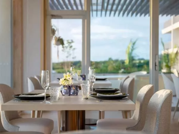 宮古エリア初のワールドクラスのリゾートホテル「イラフ SUI ラグジュアリーコレクションホテル 沖縄宮古」内にある【TIN’IN】。島でとれる色鮮やかな食材や香り高い香辛料などを使用した、ここでしか出会えない多彩なメニューが楽しめます。三面開口の室内から一望できる美しい海を眺めながら、優雅な時間を満喫できる空間です。