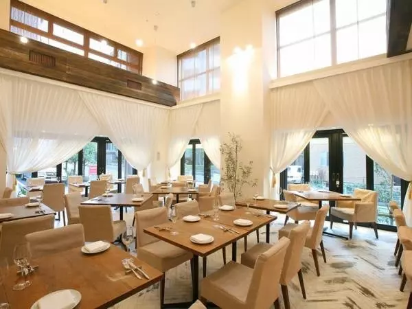 白が基調の開放感あふれる空間は、高い天井に吹き抜け窓から入り込む光も相まって、まるで北イタリアの避暑地のような雰囲気。腕をふるうのは、北イタリア各地で研鑽を積んだシェフ。昼はランチブッフェ、夜は落ち着いたディナーが満喫できるので、シーンに合わせて使い分けを。