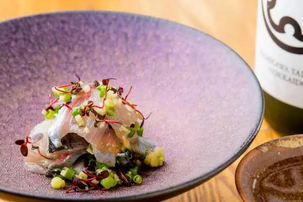 ほどよく脂がのったニシンの旨みを贅沢に引き出した一品。魚本来の味わいを生かすべく、合わせる薬味もシンプルに。全国から選りすぐりのものをそろえた日本酒との相性もバツグンで、ついもう一杯と美酒が進みます。