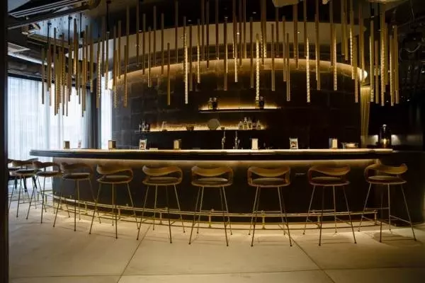 「吉野ひのき」でしつらえた、曲線を描くカウンターに圧倒される