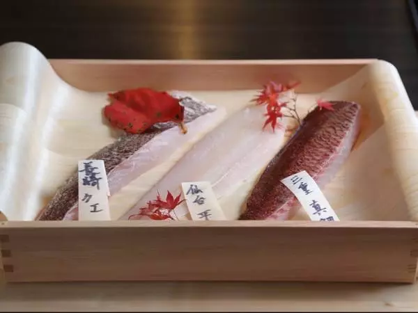 今回は長崎のクエ・仙台のヒラメ・三重のマダイがラインナップ。季節に合わせて、日本各地の旬魚を買い付けされています。鉄板焼のコースにおいては珍しい、お造りスタイルの魚料理です。