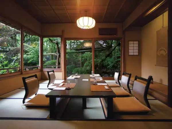 豊かな山水に囲まれた奥高尾の山里。その山道にひっそりと佇む【うかい竹亭】。どの部屋からも移ろう日本の四季が眺められ、料理に彩りを添える景色や風に揺れる木々のざわめきと共に、季節の美味を堪能することができます。