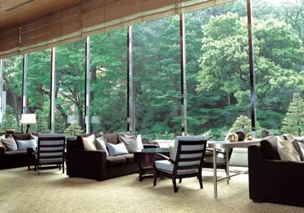 日本庭園の景色と共に、ゆったりとしたラウンジで寛ぎのひとときを