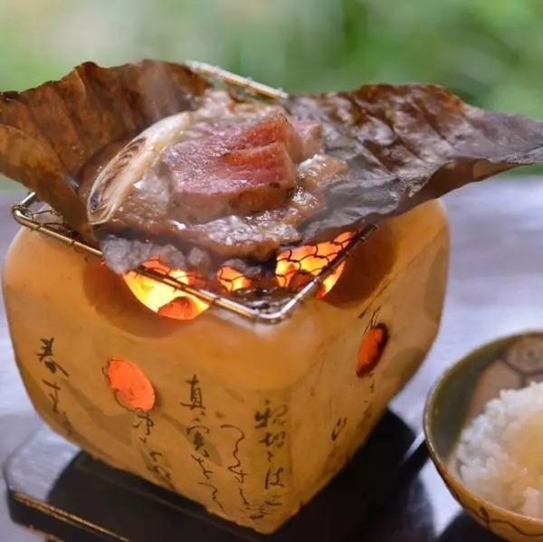 【うかい竹亭】名物料理『特選牛朴葉焼』