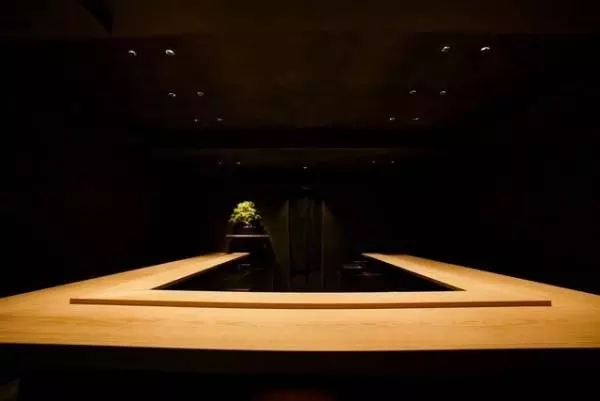 店内はカウンターのみの16席。やや暗めの照明と大きなカウンター、和モダンな雰囲気の店内は非日常感を演出