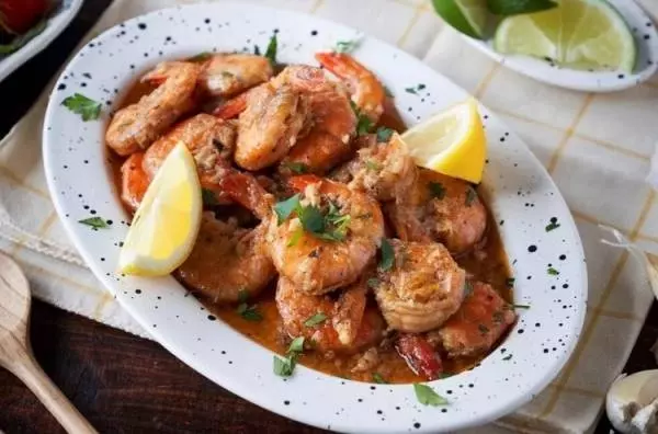 『本場ハワイアン ケイジャンガーリックシュリンプ』2,100円(税込/送料別)。カットレモンやイタリアンパセリを散らせば彩り豊かな一皿に