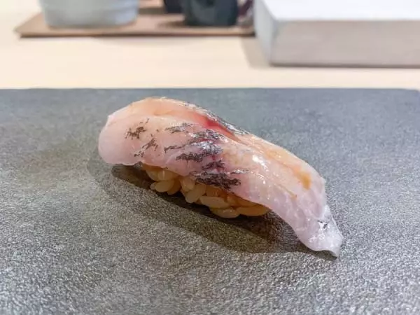 『えぼ鯛昆布〆』。ぶりっとした食感と昆布の香りと旨み、至高です