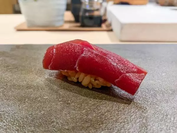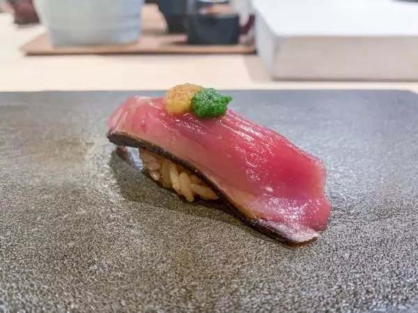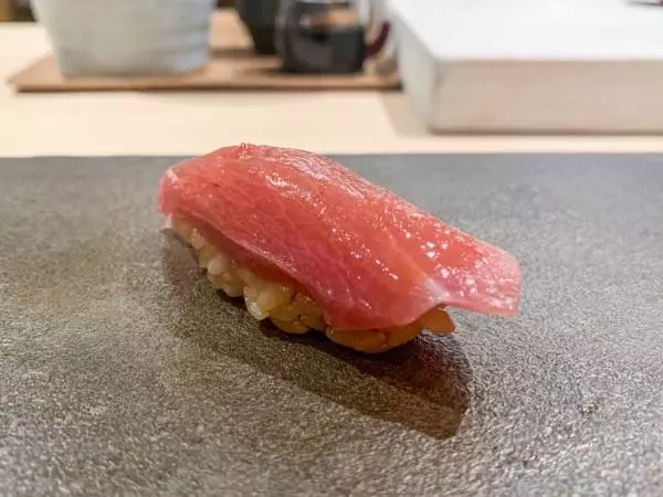 ここから『鮪』3連続です。【はっこく】の赤酢のシャリとの相性が最も素晴らしいと感じました