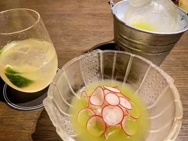 そして焼いたカニの身のたっぷり入ったガスパチョ。合わせてもらったきゅうりのジントニックが爽やかななかにも味わい深い後味を残し、夏の贅沢を感じます。