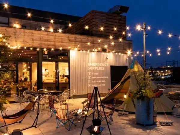 夜のピクニックを楽しむような、広いテラス席が魅力