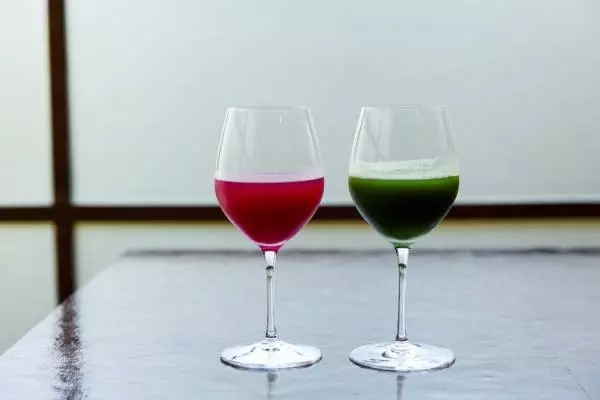 コースの最初に出される色鮮やかなドリンクも自家製の発酵ジュース。カフェタイムもオーダー可能です
