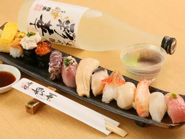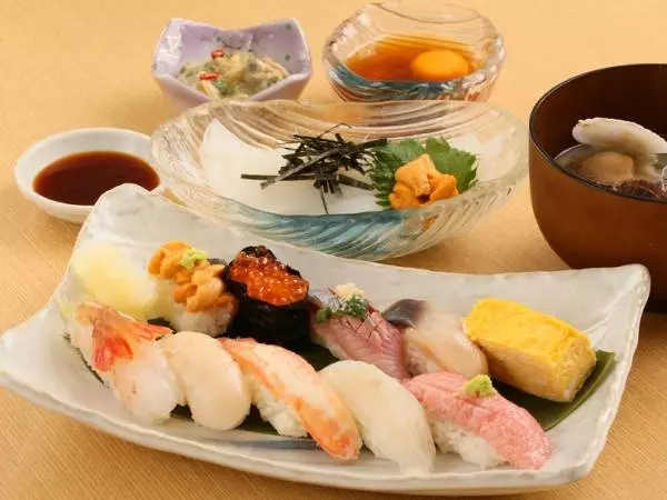 ねっとりと濃厚なマグロや、甘さの余韻が心地よいホタテなど、12貫がいただけるお得な寿司セット。その時々でネタは異なり、季節の魚介のおいしさを心ゆくまで堪能できます。