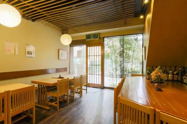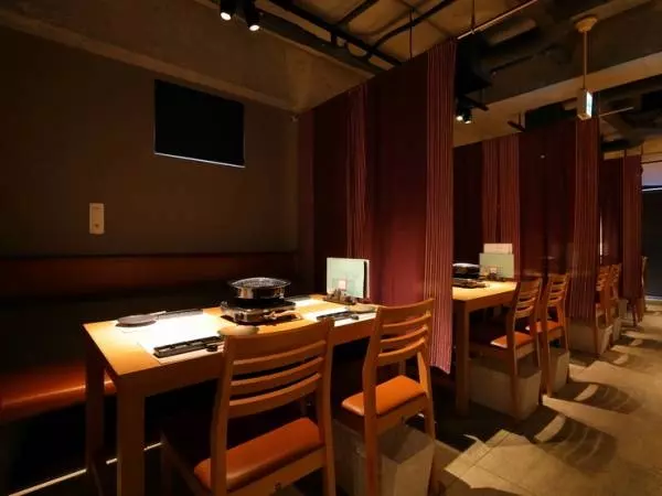 麻暖簾の仕切りで、ゆったり過ごせるテーブル席