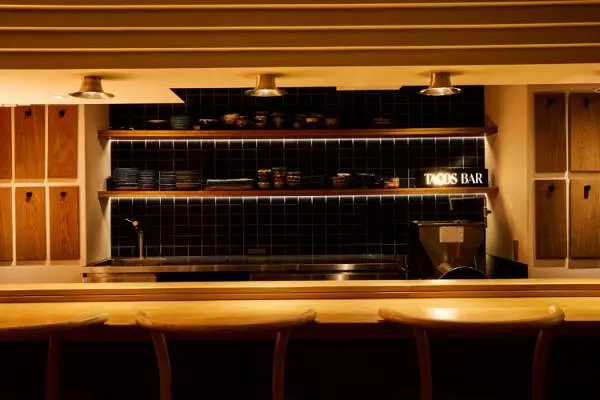 2018年に三軒茶屋にオープンした【LOS TACOS AZULES(ロス タコス アスーレス)】は、メキシコのソウルフードであるタコスを朝から気軽に楽しめるお店として大人気。その系列店である【TACOSBAR(タコスバー)】は、カジュアルで明るい雰囲気の三軒茶屋のお店とは全く別の雰囲気です。モダンな扉を開け店内に足を踏み入れると、温かみのあるウッディーなカウンター席が出迎えてくれます。