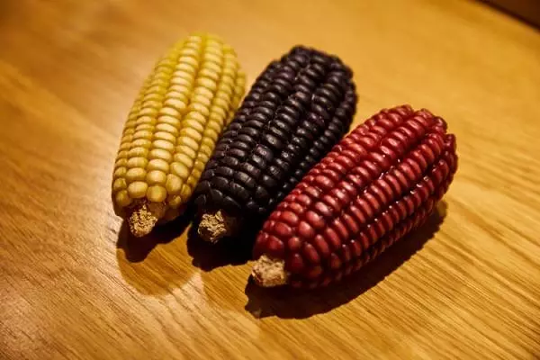 左からホワイトコーン、ブルーコーン、レッドコーン