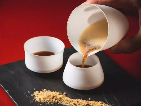 食後酒は、月夜の雲をイメージしたオリジナルカクテル『ちちぬゆ〈月夜〉』。恩納村内で最も古い酒造所で作られている泡盛『萬座』がベースとなっており、デカフェのエスプレッソ、沖縄県産の黒糖、伊江島のサトウキビなどのスパイスがブレンドされています。