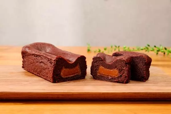 そんなベテランシェフの飯塚さんが考案した『生キャラメル入りテリーヌショコラ』。お店でひとつひとつ手づくりで焼き上げています。もちろん素材にもこだわっていて、使用するのはヴァローナ社のチョコレートと、平飼いで育てられた新潟村上オークリッチの卵、発酵バター、砂糖のみ。保存料無添加かつグルテンフリーなので、おいしいだけでなく安心していただけます。