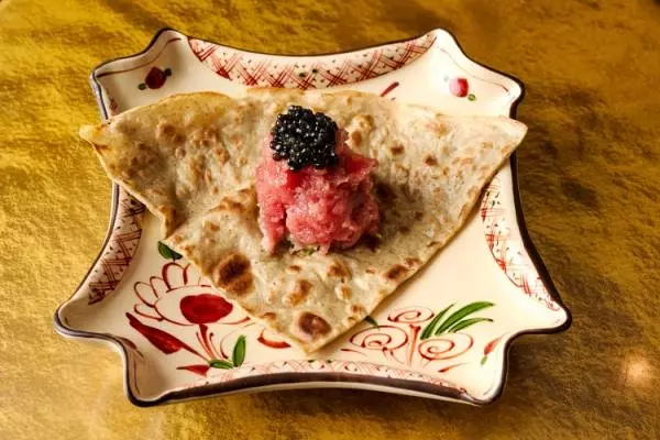 経営はマグロ卸「やま幸」とあって、魅力は蕎麦とマグロの組み合わせ、そしてシャンパーニュとのマリアージュ。細くコシのある、在来種を使った豊かな香りの十割蕎麦や、マグロと合わせたガレット、刺身風に仕立てた『蕎麦刺し』など、クリエイティブなメニューが揃います。早い時間はコース仕立てで、遅い時間帯と土曜はアラカルトで楽しめる、使い勝手のよさも魅力です。