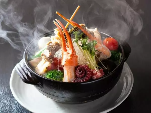 グツグツした土鍋で提供される『黄金だし 浪花おでん盛り合わせ』