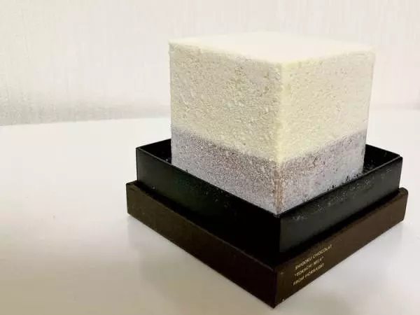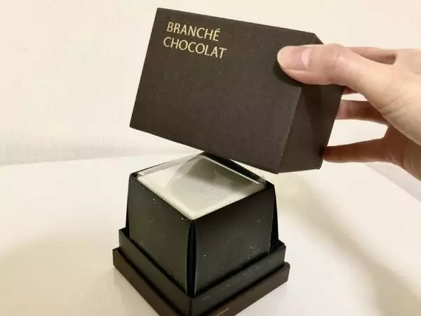 金の文字が印刷された、ダークブラウンカラーの高級感を感じられる四角い箱。まるでジュエリーボックスを開けるかのように蓋をそっと持ち上げると、真っ白な主役が顔を出します。