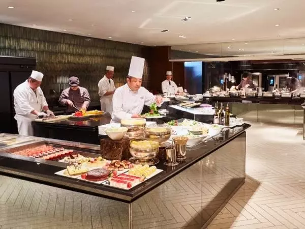 先に答えを出してしまうようですが、こちらのブッフェの魅力は、何より「ライブ感を楽しめる」こと。一般的なブッフェ会場でも、その場で注文してお皿に取り分けてもらえるコーナーを目にすることはよくありますが、そうしたコーナーが多めに設置されていることが特徴です。まるで“各専門店のシェフが自分のためだけに目の前で料理を作り提供してくれる”ような嬉しい感覚で、存分においしさを堪能することができます。