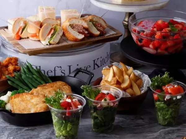 ヘルシー・ビューティー・フレッシュをコンセプトとしている【シェフズ ライブ キッチン】。おもてなしの1つとして、スタッフもコックコートを着てサービスを行うなど、シェフとサービススタッフが一体型となった「ブッフェコンシェルジュ」の形態を新たに取り入れているそうです。そうしたブッフェコンシェルジュによる居心地の良い空間づくりの様子もライブとして感じていたくなる、今の時期にぜひ堪能していただきたいメニューが目白押しのブッフェ会場でした。