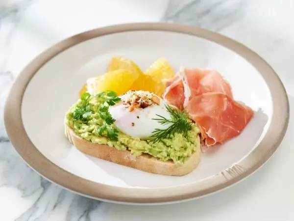 1,600円/もっちりとした食感のパンの上にはアボカドを、その横には切りたての生ハムを添えたアボカドトースト