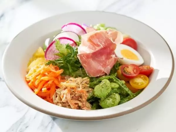 1,700円/【DEK 青山】のシグニチャーメニュー。レタスや3種の旬野菜のマリネ、自家製ピクルス、季節の果物など、一皿で様々な味が楽しめるサラダ