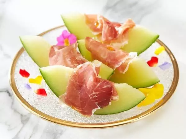 1,800円/静岡県産クラウンメロンと切り立ての生ハムを。ジューシーで甘いクラウンメロンとフレッシュな塩気の生ハムがマッチ