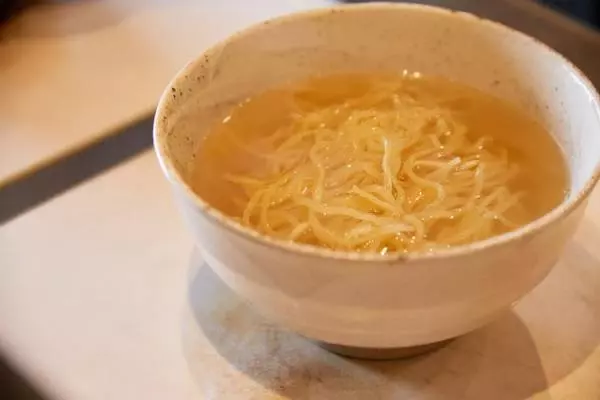 ラーメンの味を決定づけるスープ。鍋に火をかけて旨みを抽出する従来のスタイルの場合、どうしても生じてしまうのが“濁り”です。クリアなスープを実現するために、仲本さんが見つけた解は“蒸”でした。新鮮な鶏ガラを、100℃に熱したオーブンで蒸し、旨みを抽出する方法をとっています。この鶏ガラをベースに、仲本食堂のうどんだしを加えてさらに旨みを増し、クリアながらも深みのある味わいに仕上げています。