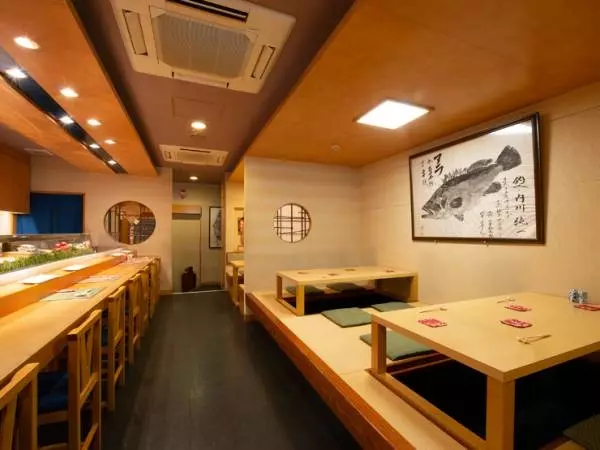 寿司を握る店主の熟練の技だけでなく会話も楽しめる、オススメのカウンター席は6mのイチョウの一枚板使用の特注。掘りごたつ式の座敷席では8名までの宴会も可能です。肩肘張らずに気軽に博多そして九州の恵みを寿司で味わいたいときにオススメしたい一軒です。コストパフォーマンスにも大満足です!