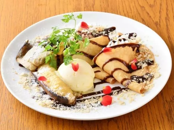 トロトロ食感の薪焼きバナナにアイスをプラスした看板スイーツ