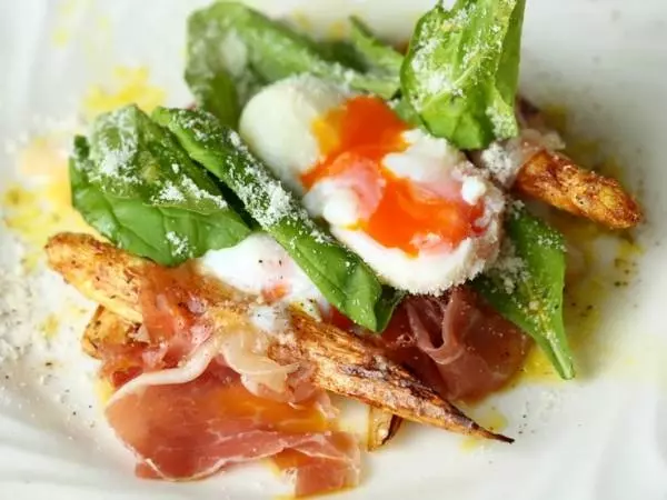 ホワイトアスパラと半熟卵&生ハムとの取り合わせも抜群!