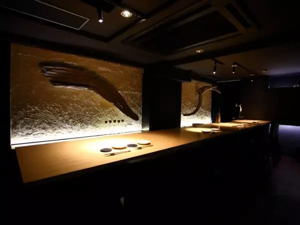 黒で統一されたスタイリッシュな空間でまず目を引くのが、白木のロングカウンター。ダウンライトの温かな光が浮かび上がらせる特等席は、ゆったりとグラスを傾けるのに最適です。一人で訪れるもよし、カップルで寄り添うもよし。バーテンダーとの会話もステキなひとときに花を添えてくれます。