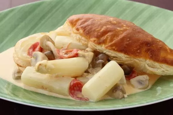 『ホワイトアスパラガスのクリーム和えパイ皮詰め』