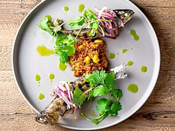 川越駅西口からペデストリアンデッキで直結、徒歩1分とアクセス便利な立地の【川越薪火料理インザパーク】。地元ならではの新鮮素材を、店内中央に設置された薪グリルで豪快に焼き上げてくれます。仕上げは「記憶のスパイス」。世界各地から厳選された10種類のスパイスを使って、お好みで味付けを楽しめます。グリルメニューで特にオススメは、市場から仕入れたフレッシュな魚の滋味が凝縮する『市場からの本日の鮮魚薪火焼き』です。