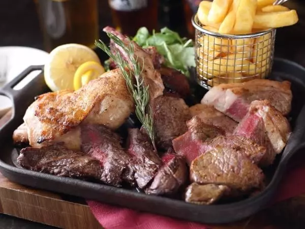 看板メニューの『ミュージアムミートプラッター5種食べ比べステック・フリット』は、それぞれの食材に合わせた調理法でつくった肉料理5種類を堪能でき、ボリューム満点。