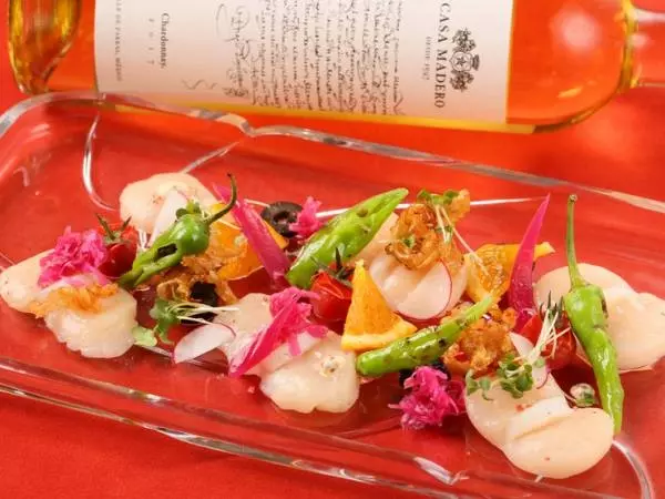 料理を通じてメキシコに魅了されたオーナーシェフが、メキシコ食材と道産食材を組み合わせた料理を提供する【本格メキシコ料理ViVALAViDA】。こちらでいただける『帆立貝のセビーチェ』は、中南米発祥セビーチェのビネガーソースを、北海道では冬から春にかけて食べ頃を迎える新鮮な活帆立に合わせたマリネ。さっぱりとしたソースの酸味が白ワインとの相性抜群の一皿です。