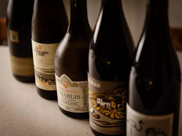 ワインは、ソムリエの資格を持つ髙田氏が厳選。「高級過ぎる銘柄は避け、フランスのほか、日本、ジョージア、ニューヨーク、ポルトガルなど、面白みのあるものをセレクトしています」。グラスワインやボトルワインでのオーダーの他、ペアリングメニューも用意。シャンパーニュ、ワイン4種で5,900円。プラス800円でデザートワインを付けることもできます。