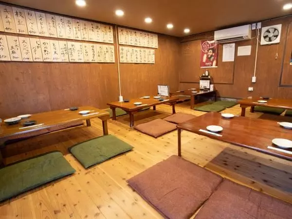 お酒は、やかんに3合分の日本酒が入り、湯飲みで豪快に飲む「やかん酒」が名物。店内は落ち着いた和の雰囲気で、カウンターやテーブル、お座敷から、ニーズに合わせて選べます。宴会にもよく利用されており、座敷利用で最大20人まで使えます。