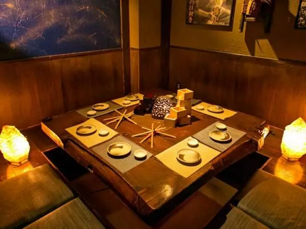 和モダンが香る落ち着いた店内には、2名・4名・6名・8名と人数に応じて選べる個室がズラリ。各部屋ともタイプの異なる設えで、最大は40名まで対応しています。掘りごたつ式なので、ゆったりとリラックスして食事会や宴会を楽しむことが可能。全10種が味わえる厳選した北海道の地酒も自慢です。