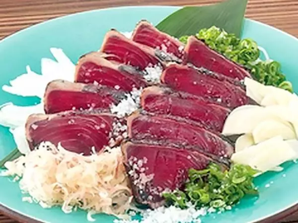 カツオのタタキは、火入れを一切していない天然の「土佐の岩塩」で