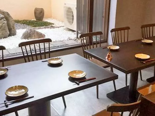 坪庭の風情が人気の1階にある半個室。ホッと和める空間に