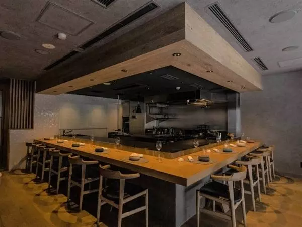 店名の【TROIS VISAGES】は、フランス語で「3つの顔」の意味。「ゲスト」「スタッフ」「食材の生産者」を大切にするという信念が込められています。店内のメインに置かれているのはL字型のカウンターテーブル。ダイニングチェアや照明など北欧テイストのインテリアもスタイリッシュで心地よさを演出してくれています。
