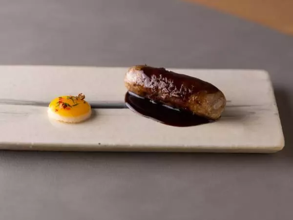日本やパリの星付き店で修業した國長亮平シェフが腕を振るうフレンチレストラン【TROIS VISAGES】。ディナー、平日昼のテイクアウト、土曜昼のアフタヌーンティーをイメージしたデザート主体のランチコースの3つの異なるシーンを展開しています。高知産の“極みえのき”を使用し、豚挽き肉と合わせて豚腸に詰めた『エノキのソーセージ』など、食材を敬愛する姿勢から生まれたスペシャリテにも注目です。